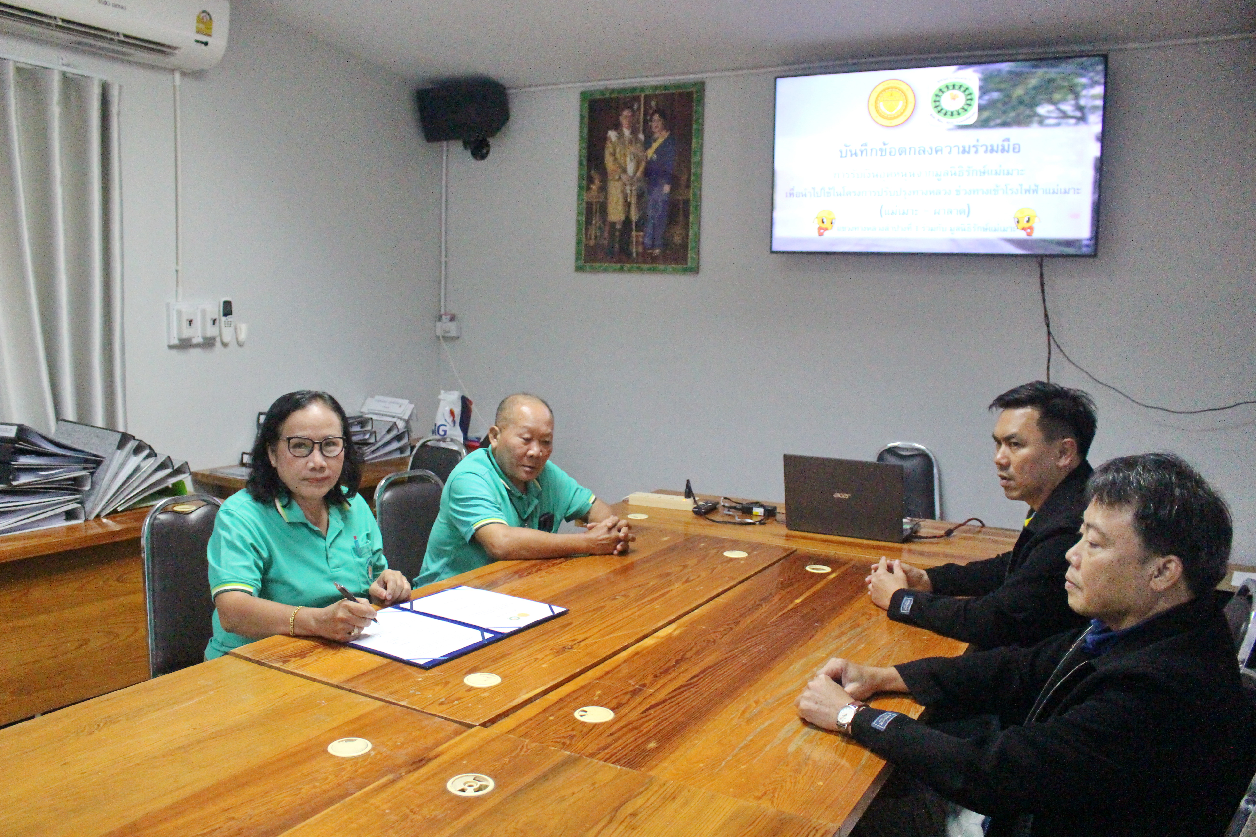 ร่วมกับ คณะกรรมการมูลนิธิรักษ์แม่เมาะ ได้แก่นาย สมมุติ หาลือ ประธานมูลนิธิรักษ์แม่เมาะ และ นางสุนทรี วงศ์เปี้ย เลขานุการมูลนิธิรักษ์แม่เมาะ ร่วมบันทึกข้อตกลงความร่วมมือการรับเงินอุดหนุนจากมูลนิธิรักษ์แม่เมาะ เพื่อนำไปใช้ในโครงการปรับปรุงทางหลวง ช่วงทางเข้าโรงไฟฟ้าแม่แมาะ ทางหลวงหมายเลข 1348 ตอนทางเข้าโรงไฟฟ้าแม่เมาะงานปรับระดับผิวทาง กม.11+200 - กม.11+515 และ กม.13+220 - กม.13+535 เพื่อปรับปรุงทางหลวงให้มีประสิทธิภาพด้านการจราจรและอำนวยความปลอดภัยแก่ผู้ใช้เส้นทาง