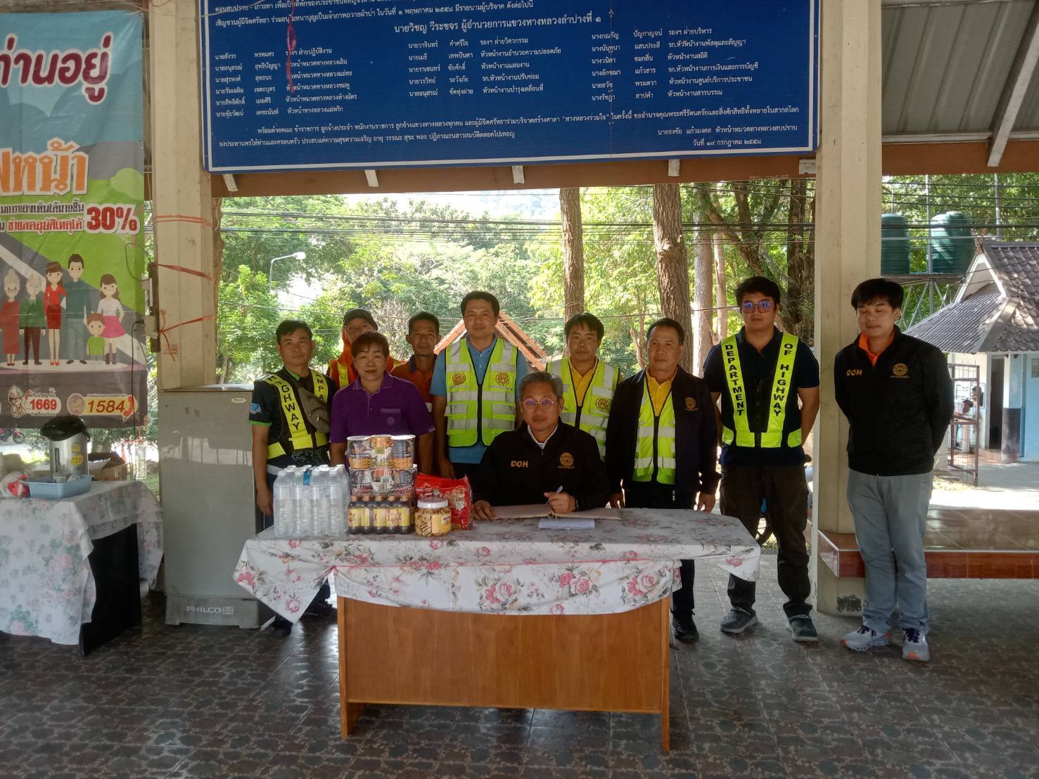 โดยมี นายสุรพงค์ สุทธนะ รองผู้อำนวยการแขวงทางหลวงลำปางที่ 1(ฝ่ายปฏิบัติการ) นายนิทัศน์ ปังกิลินันท์ หัวหน้าหมวดทางหลวงแม่พริก นายสิริศักดิ์ รัชตะจิรวิทย์ หัวหน้าหมวดทางหลวงห้างฉัตร นายชัยวัฒน์ เตชะนันท์ หัวหน้าหมวดทางหลวงสบปราบ นายนัฐพงษ์ ปงใจ ผู้ช่วยหมวดทางหลวงห้างฉัตร นายบัณฑิต ศริวงศ์ ผู้ช่วยหมวดทางหลวงสบปราบและ เจ้าหน้าที่หมวดฯ ให้การต้อนรับ