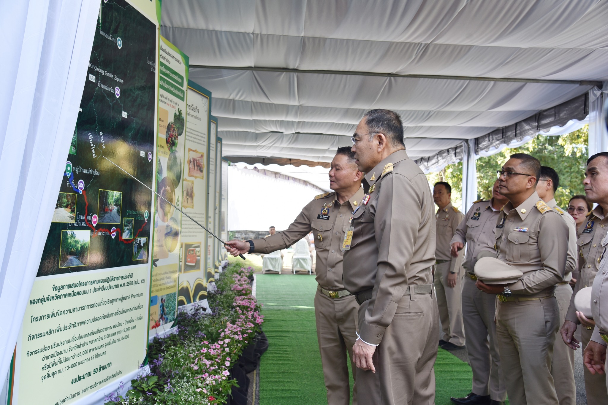 องคมนตรี ตรวจเยี่ยมและให้กำลังใจเจ้าหน้าที่ศูนย์สร้างทางลำปาง ติดตามผลการดำเนินงานและสนับสนุนการพัฒนาพื้นที่โครงการหลวง