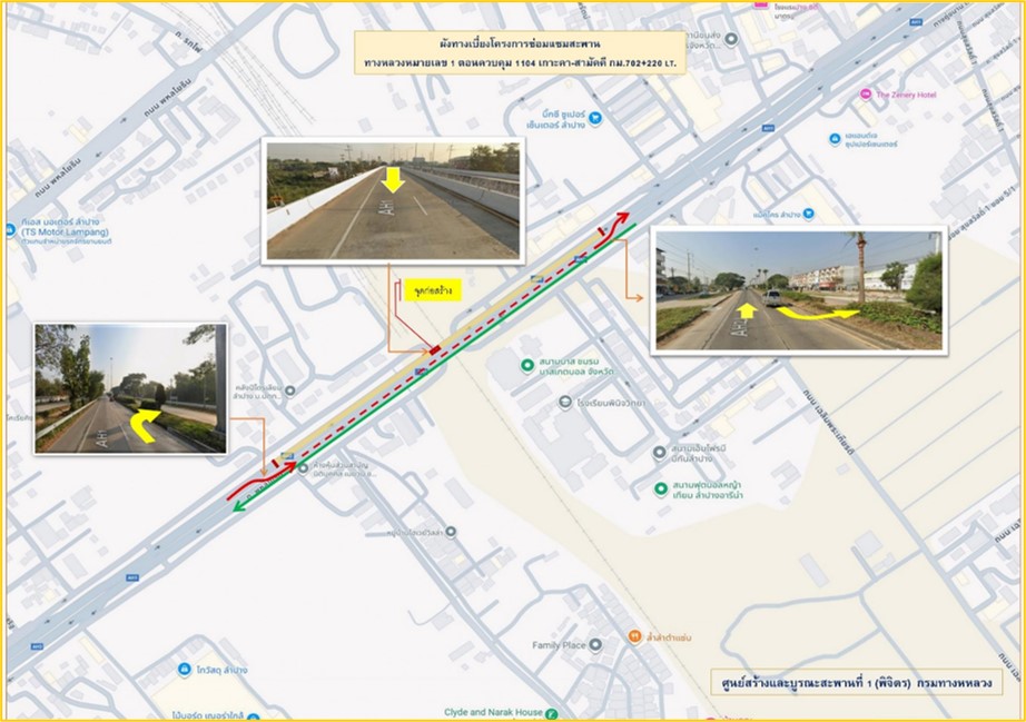 ในทางหลวงหมายเลข 1 ตอนเกาะคา-สามัคคี ที่ กม.702+220 LT ระหว่าง วันที่ 5 มกราคม 2569 ถึง 15 กุมภาพันธ์ 2569 โดยในการซ่อมแซมสะพาน