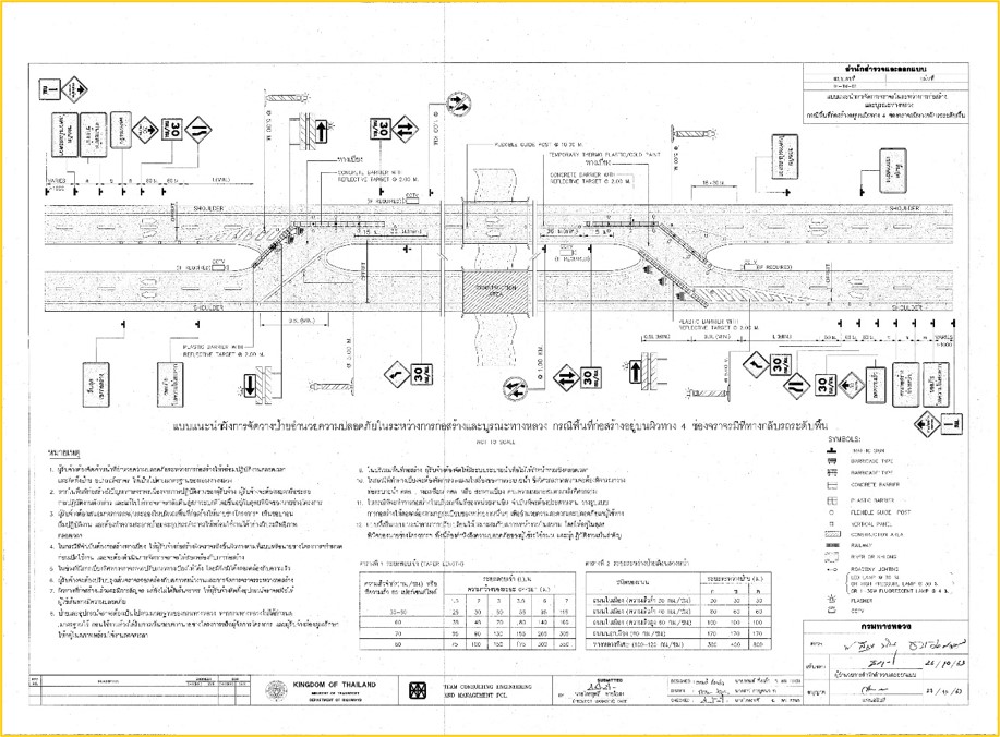 โดยจะแสดงแผนผังระยะทางก่อสร้าง ติดตั้งป้ายเตือนทำการเบี่ยงจราจร เพื่อทำการก่อสร้างทางและสะพาน