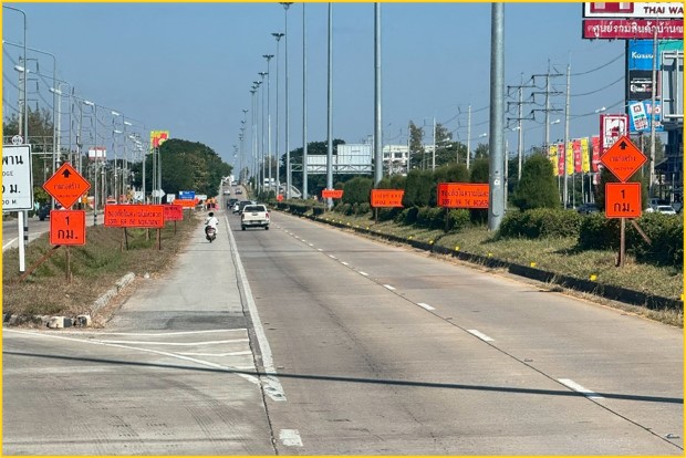 ขอให้ผู้ใช้เส้นทางเดินทางด้วยความระมัดระวัง ลดความเร็วในช่วงทางเบี่ยง