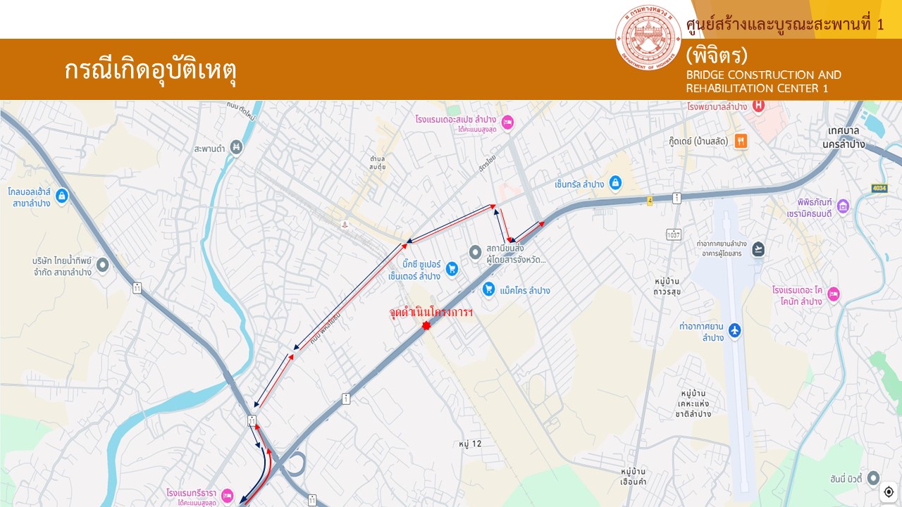 พร้อมแผนที่ทางเลี่ยงฉุกเฉินกรณีเกิดอุบัติเหตุใหญ่ (ตามเอกสารแนบ)