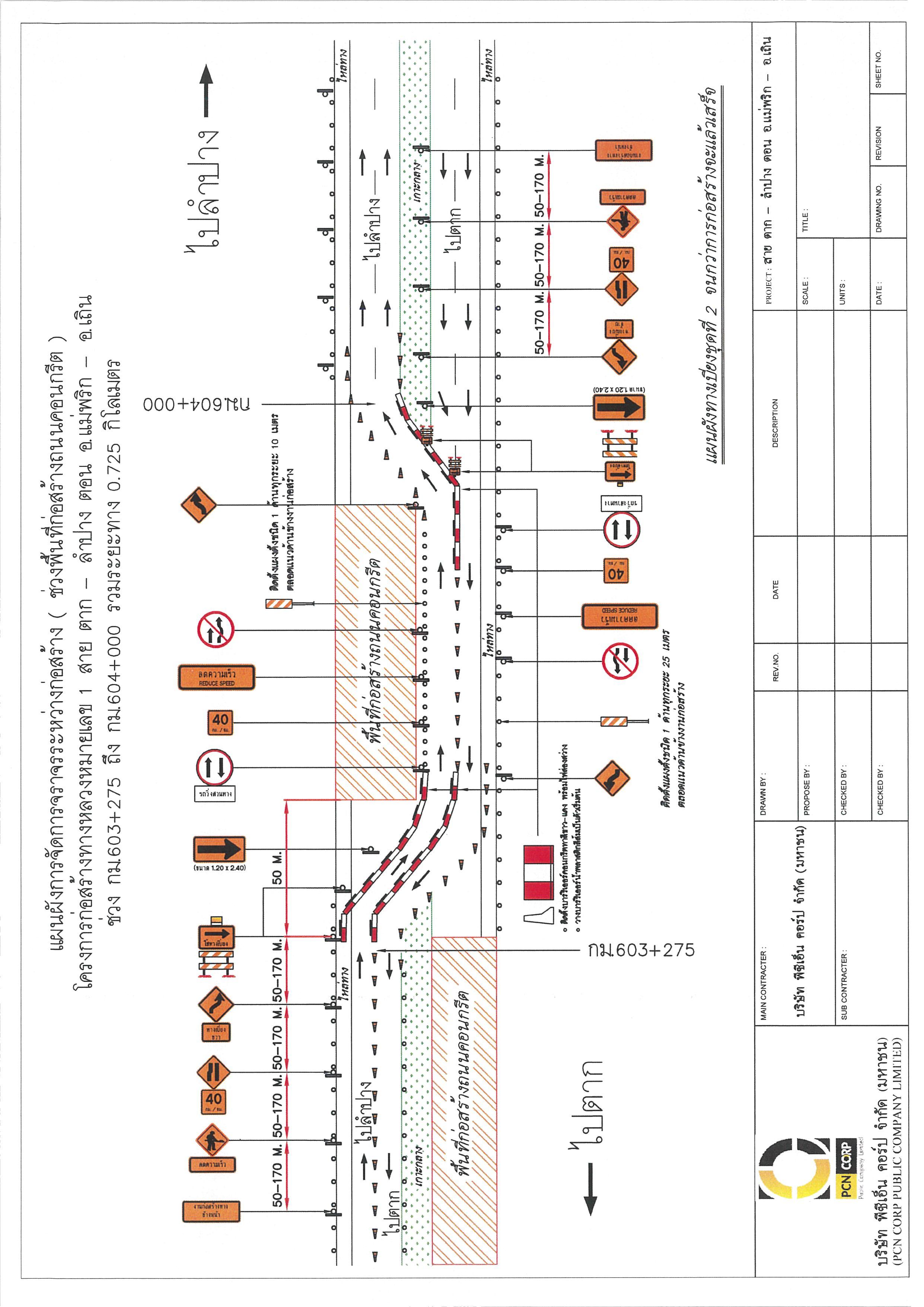 ขอให้ผู้ใช้เส้นทางเดินทางด้วยความระมัดระวัง ลดความเร็วในช่วงทางเบี่ยง