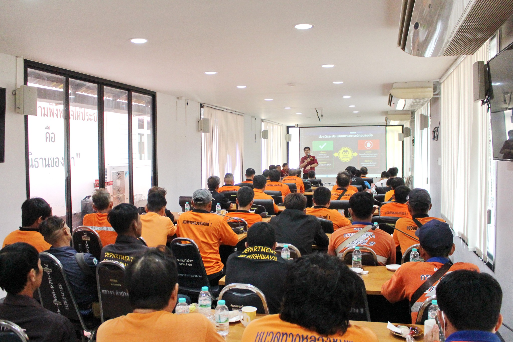 เข้าร่วมการอบรม การดับไฟป่าในเขตข้างทางหลวงฯ จากวิทยากร เจ้าหน้าที่สถานีควบคุมไฟป่า เขลางค์ – พระบาท เพื่อนำความรู้พื้นฐาน ยุทธวิธี และความปลอดภัยในการปฏิบัติงาน