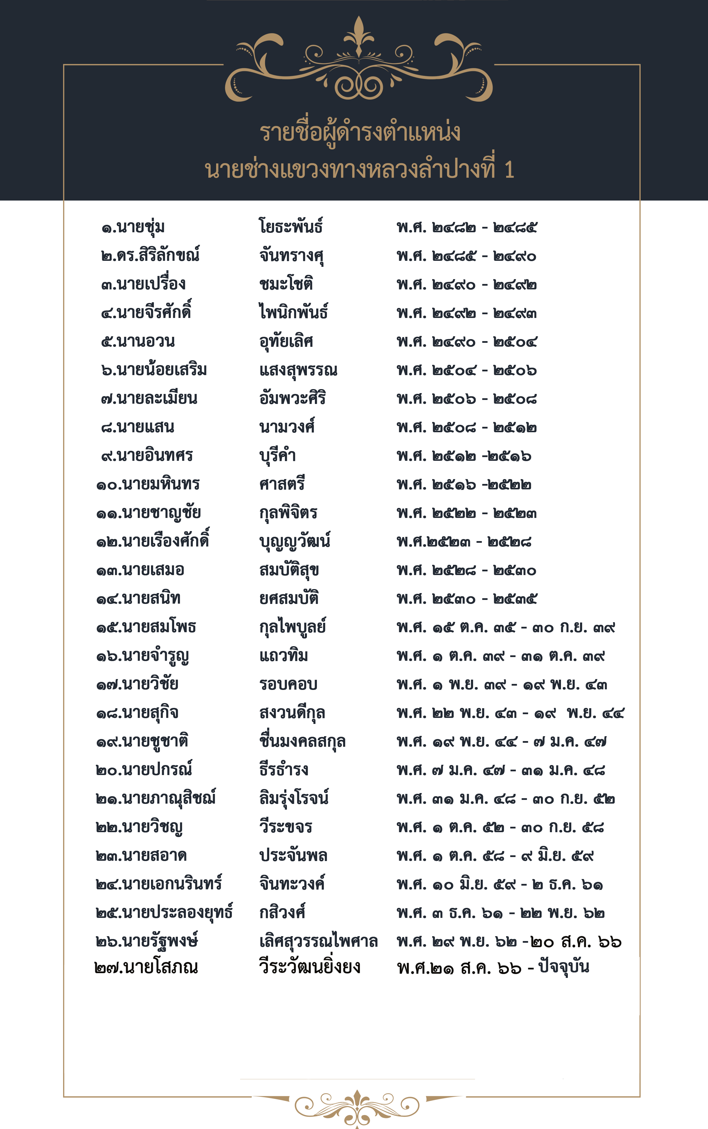 รายชื่อผู้ดำรงตำแหน่งนายช่างแขวงการทางหลวงลำปางที่๑