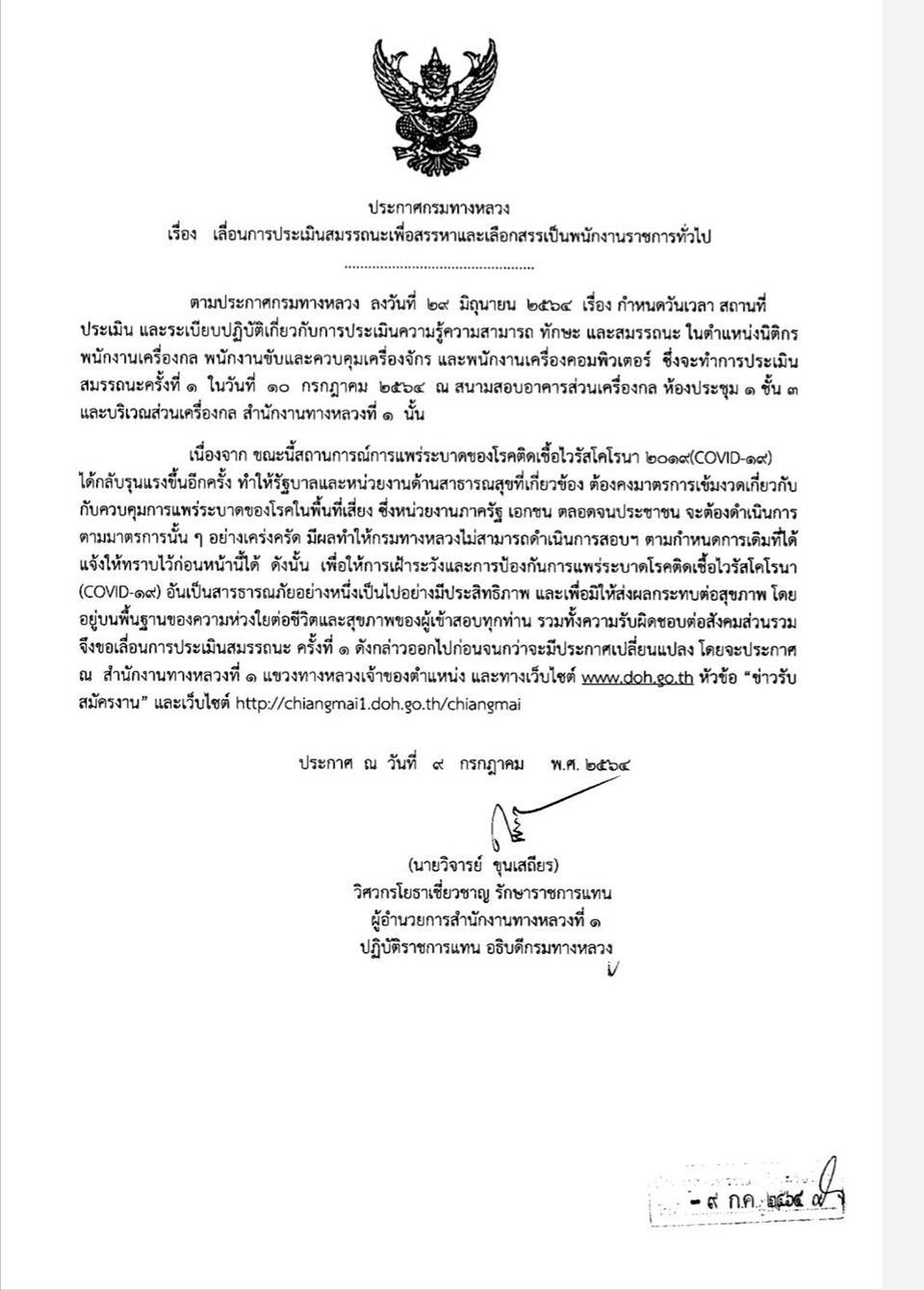 ประกาศเลื่อนการประเมินสมรรถนะและเลือกสรรเป็นพนักงานราชการทั่วไป