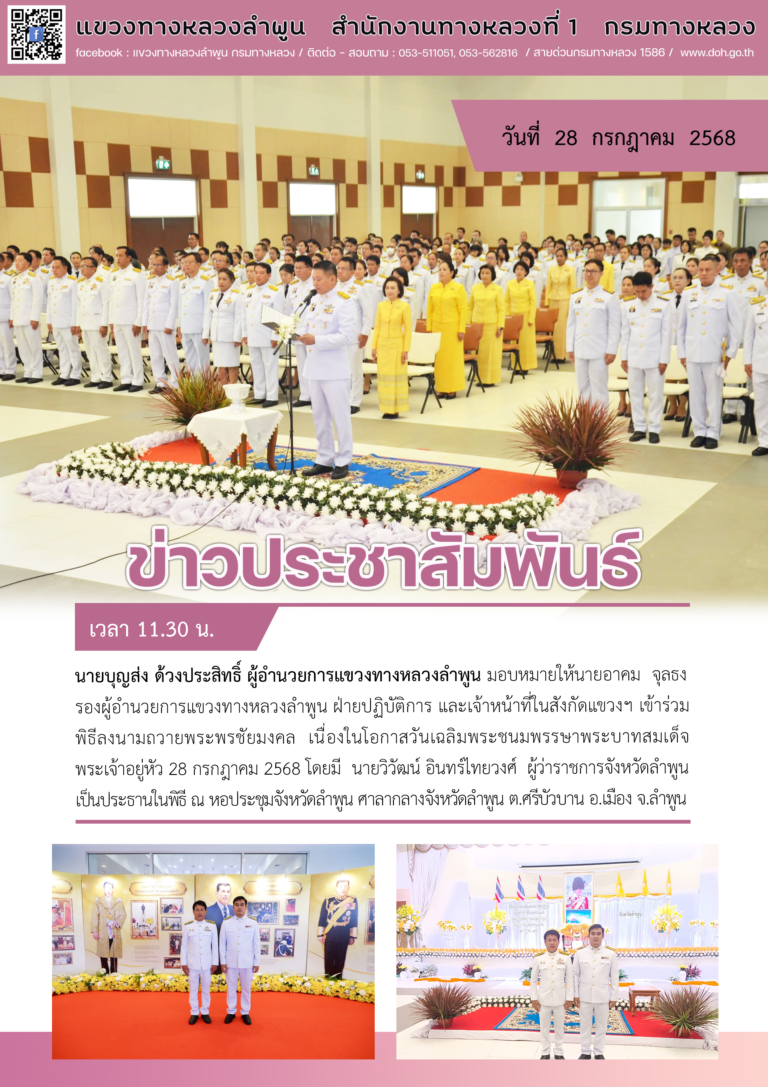 ข่าวประชาสัมพันธ์ วันที่ 28 กรกฎาคม 2568 (11.30 น.) |