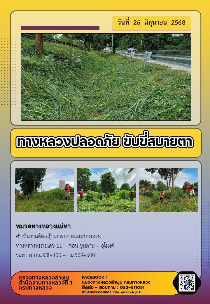 ข้อมูลภาพกิจกรรม : ทางหลวงปลอดภัย ขับขี่สบายตา ( 26 มิถุนายน 2568 )