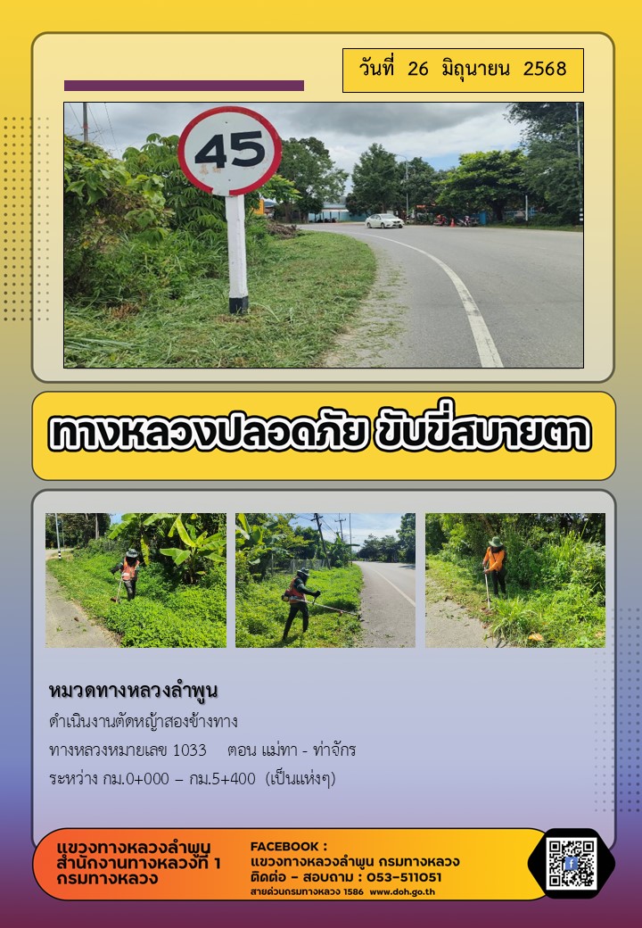ทางหลวงปลอดภัย ขับขี่สบายตา ( 26 มิถุนายน 2568 )