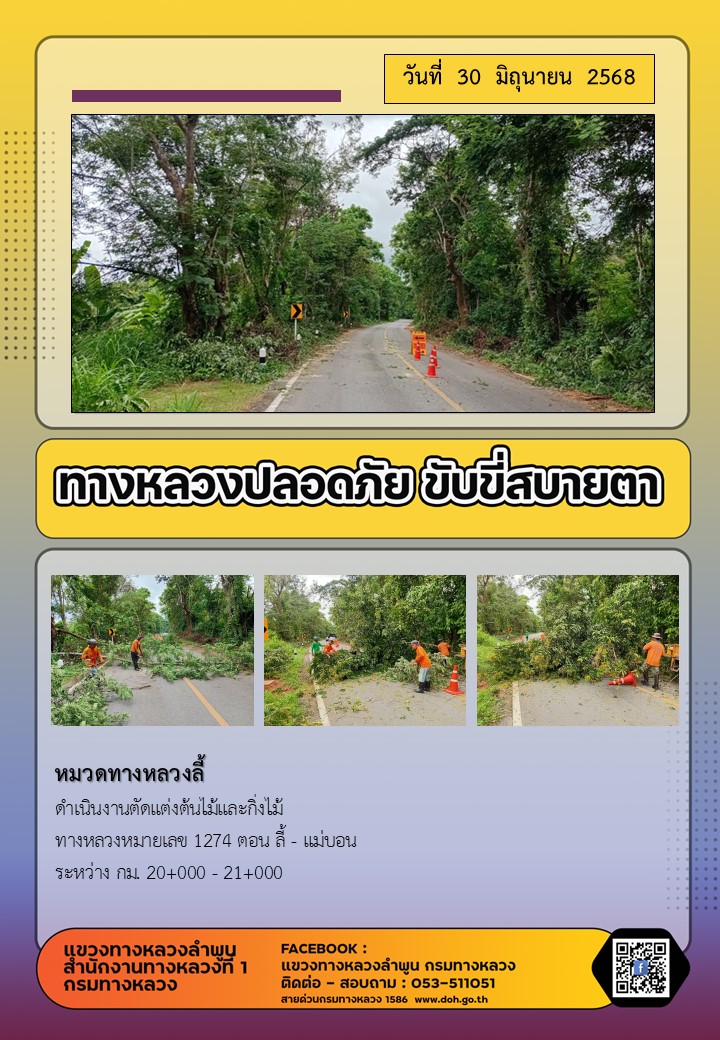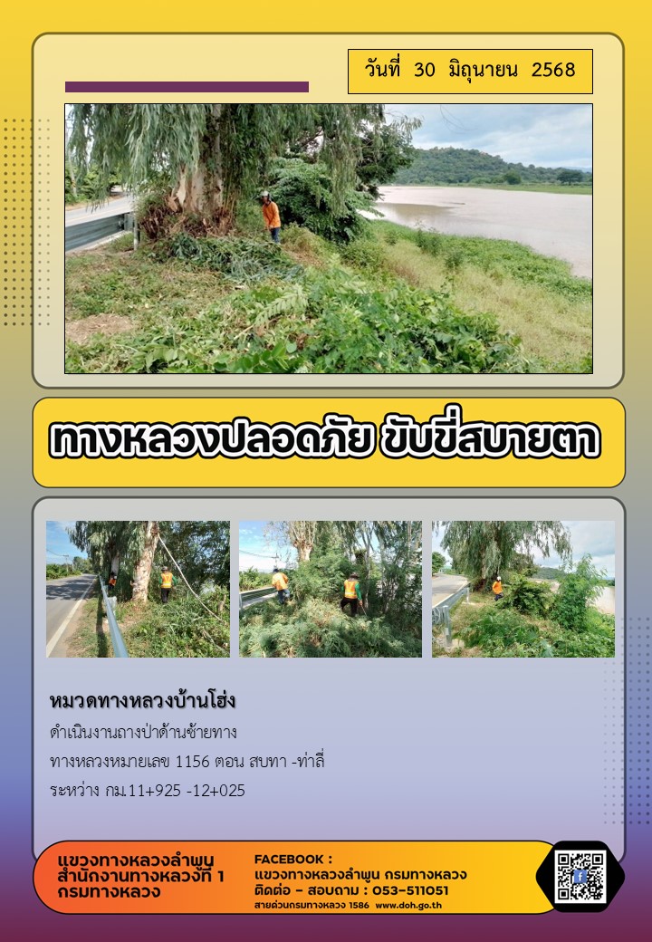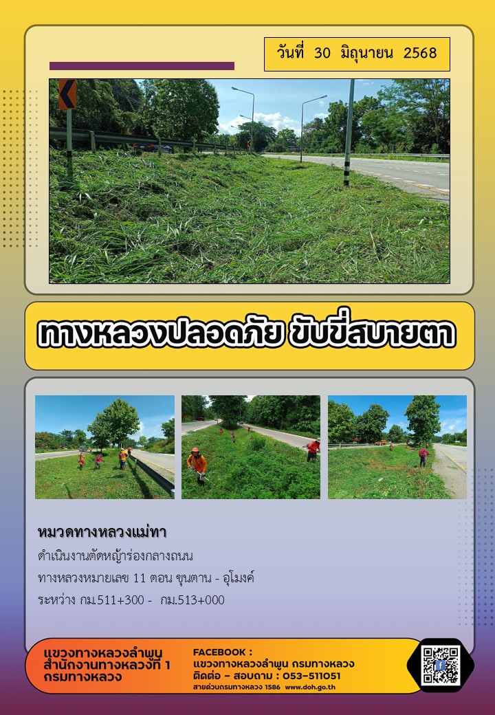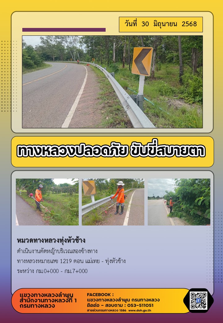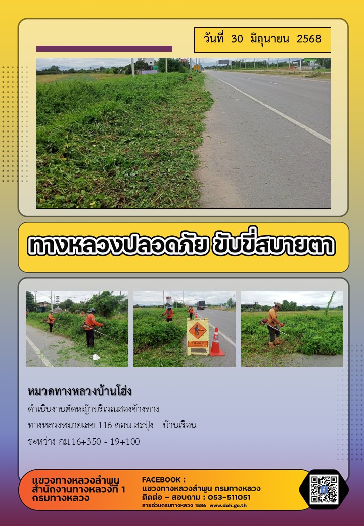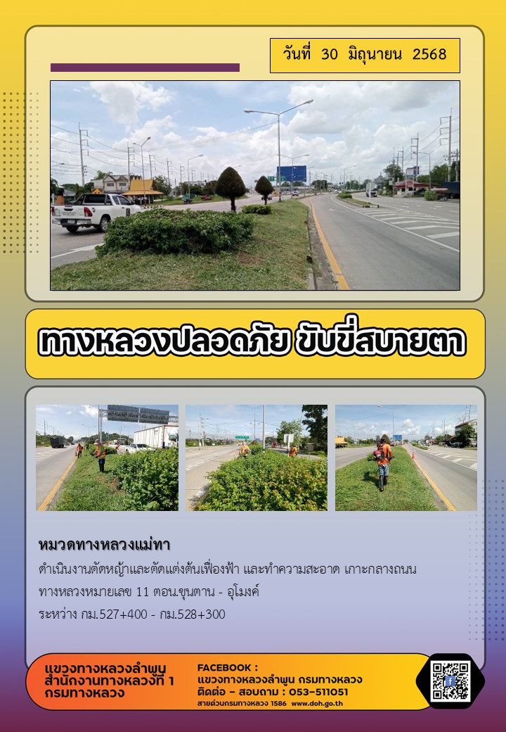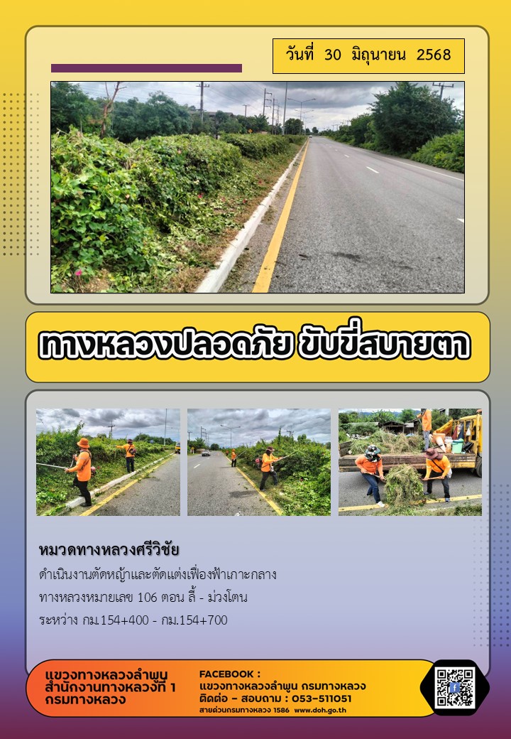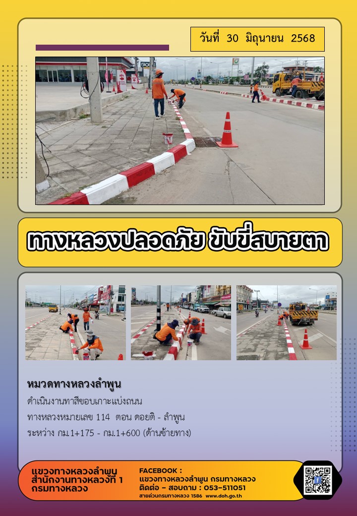 ข้อมูลภาพกิจกรรม : ทางหลวงปลอดภัย ขับขี่สบายตา ( 30 มิถุนายน 2568 )