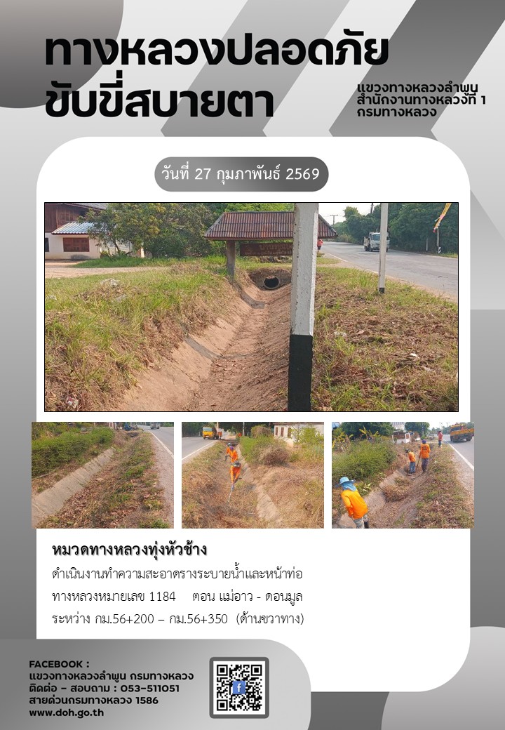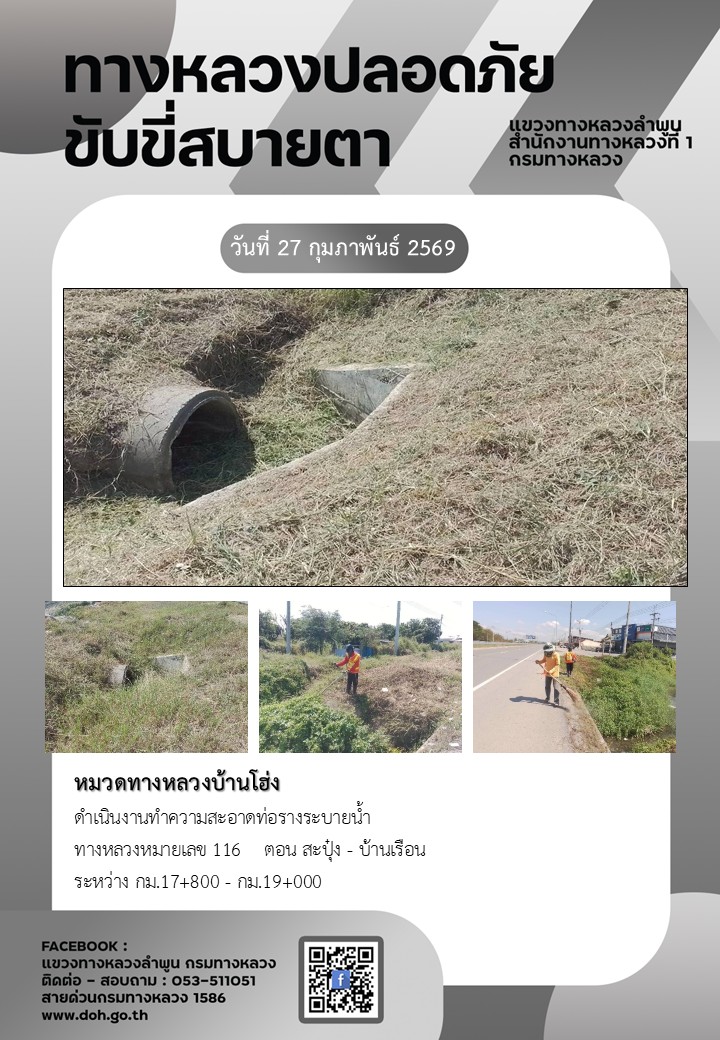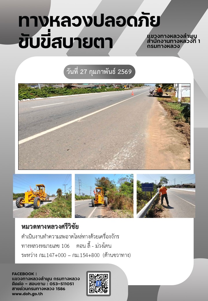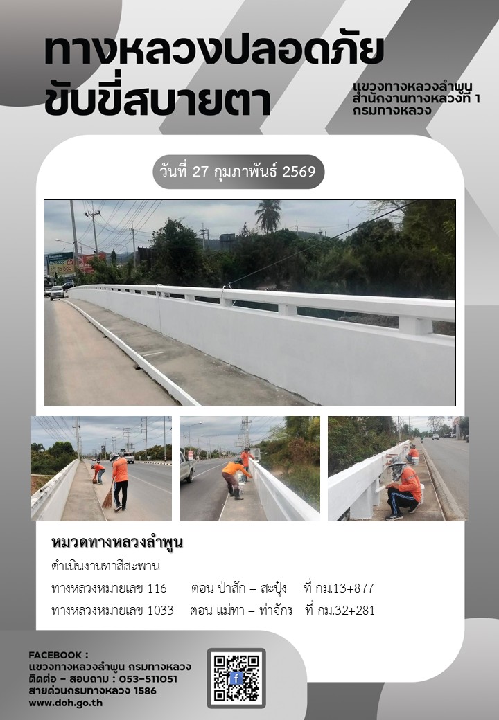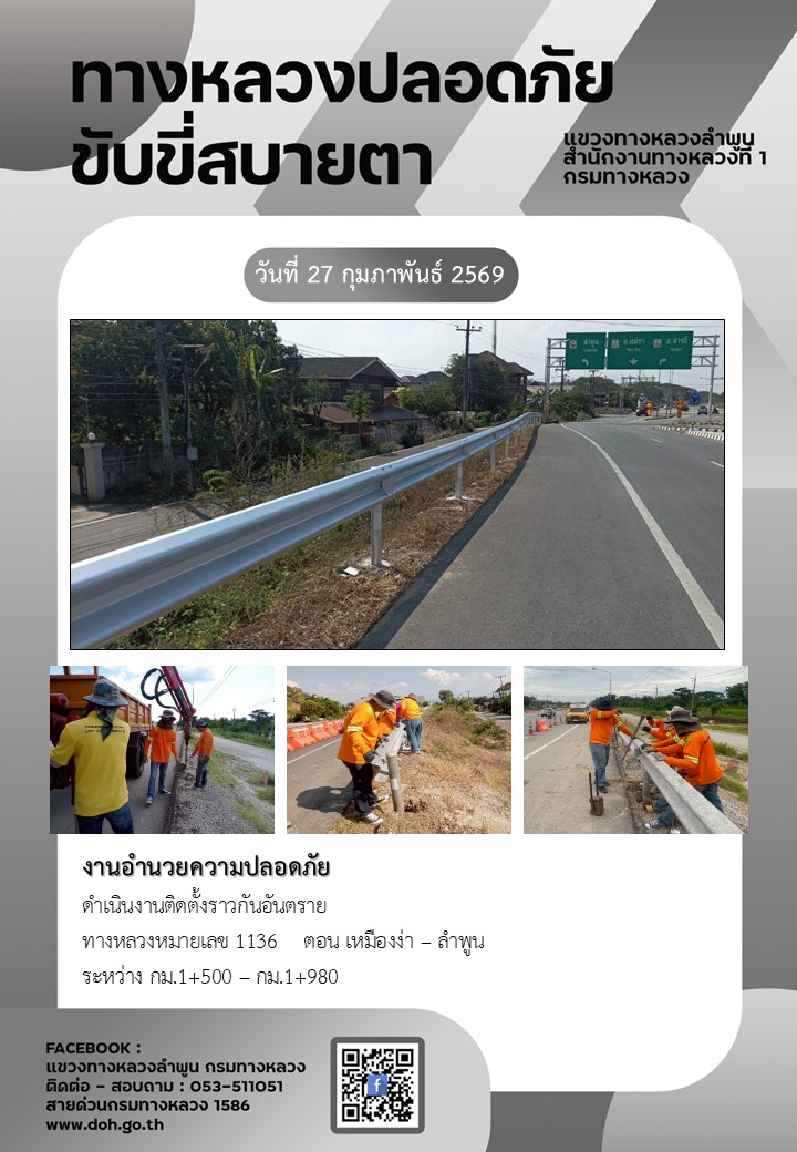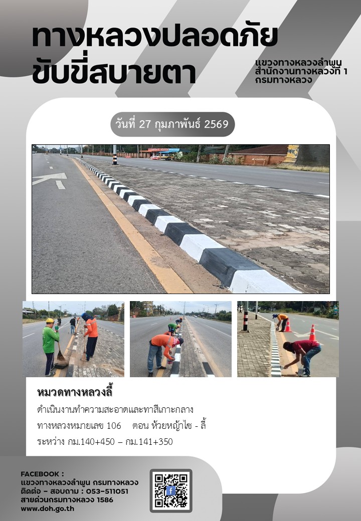 ข้อมูลภาพกิจกรรม : ทางหลวงปลอดภัย ขับขี่สบายตา ( 27 กุมภาพันธ์ 2569 )