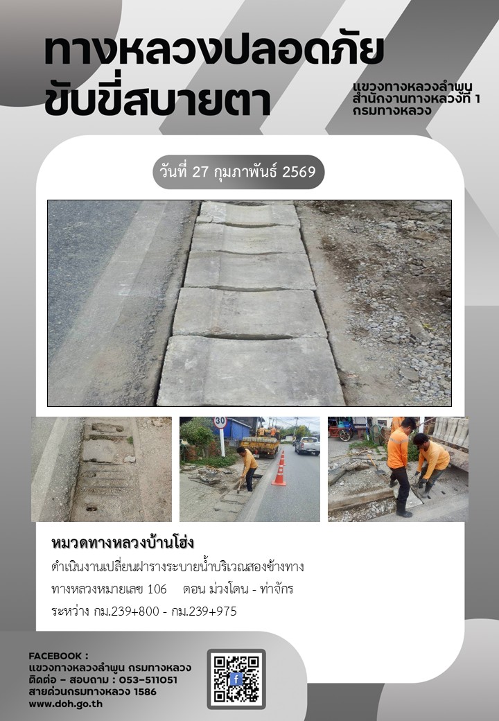 ทางหลวงปลอดภัย ขับขี่สบายตา ( 27 กุมภาพันธ์ 2569 )