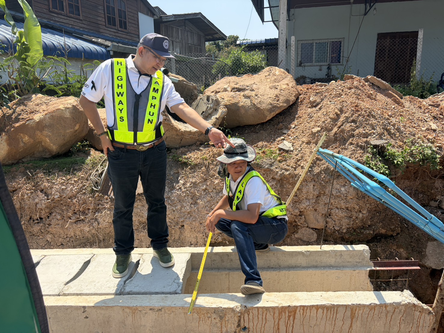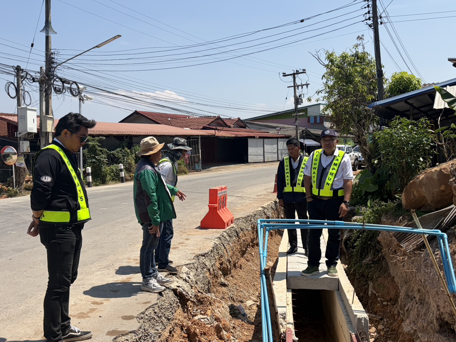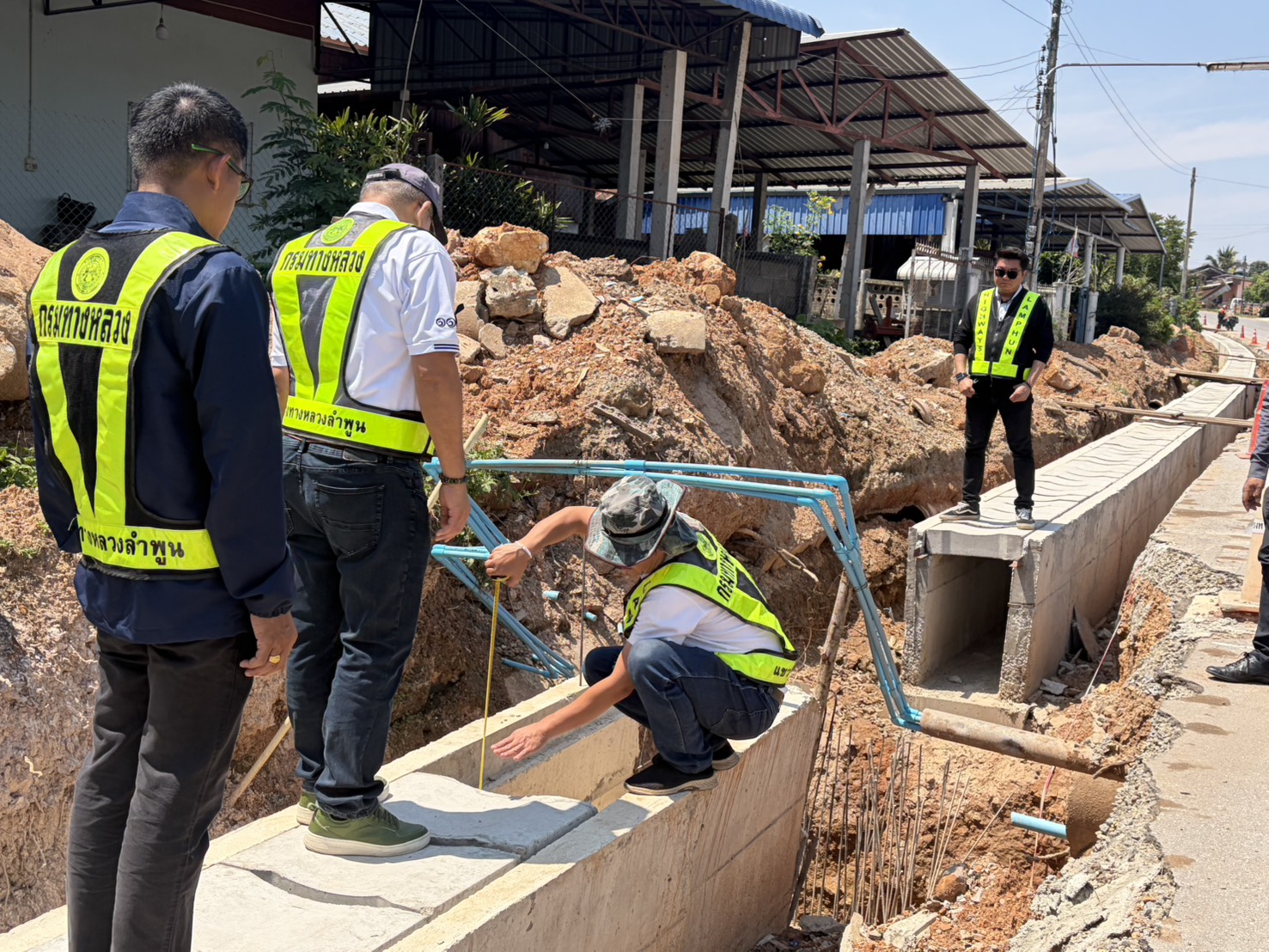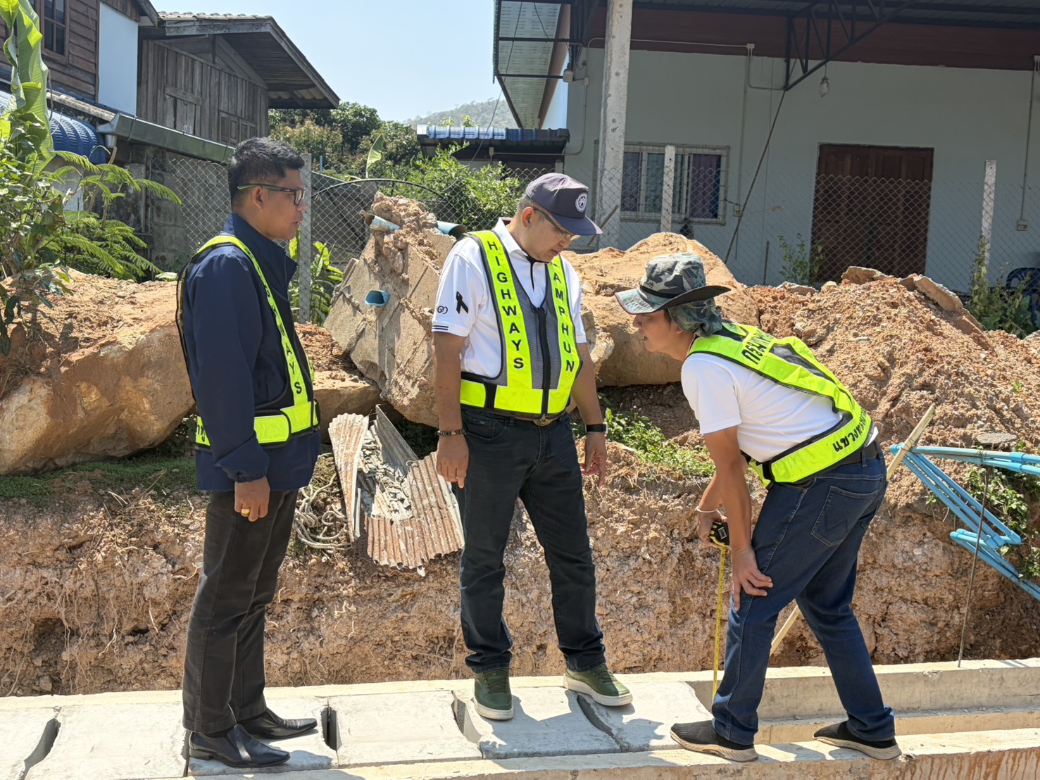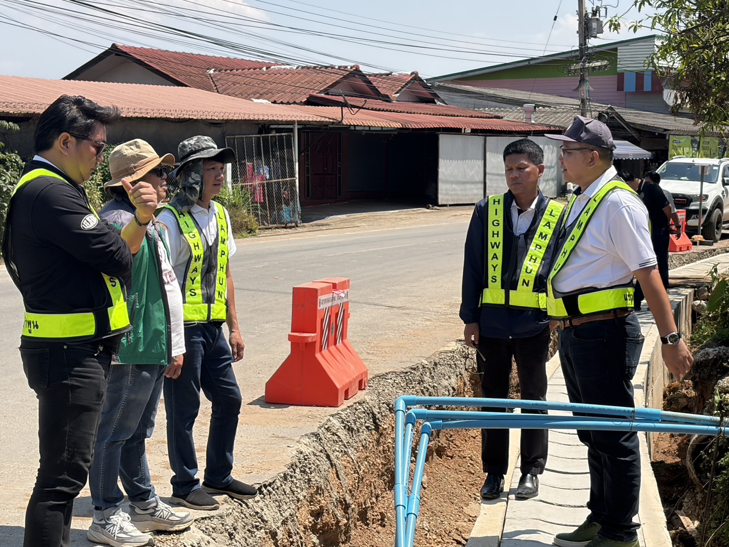 นายปัญญา หวังดี ผู้อำนวยการแขวงทางหลวงลำพูน พร้อมด้วยนายทนงค์ เอี่ยมสำอางค์ รองผู้อำนวยการฯ ฝ่ายวิศวกรรม หัวหน้าหมวดทางหลวง และเจ้าหน้าที่แขวงทางหลวงลำพูน ออกพื้นที่ตรวจงานแก้ไขและป้องกันน้ำท่วมทาง (งานรางระบายน้ำ) ตอน แม่อาว-ดอนมูล กม. 50+250 - กม.51+549 อ.ทุ่งหัวช้าง จ.ลำพูน