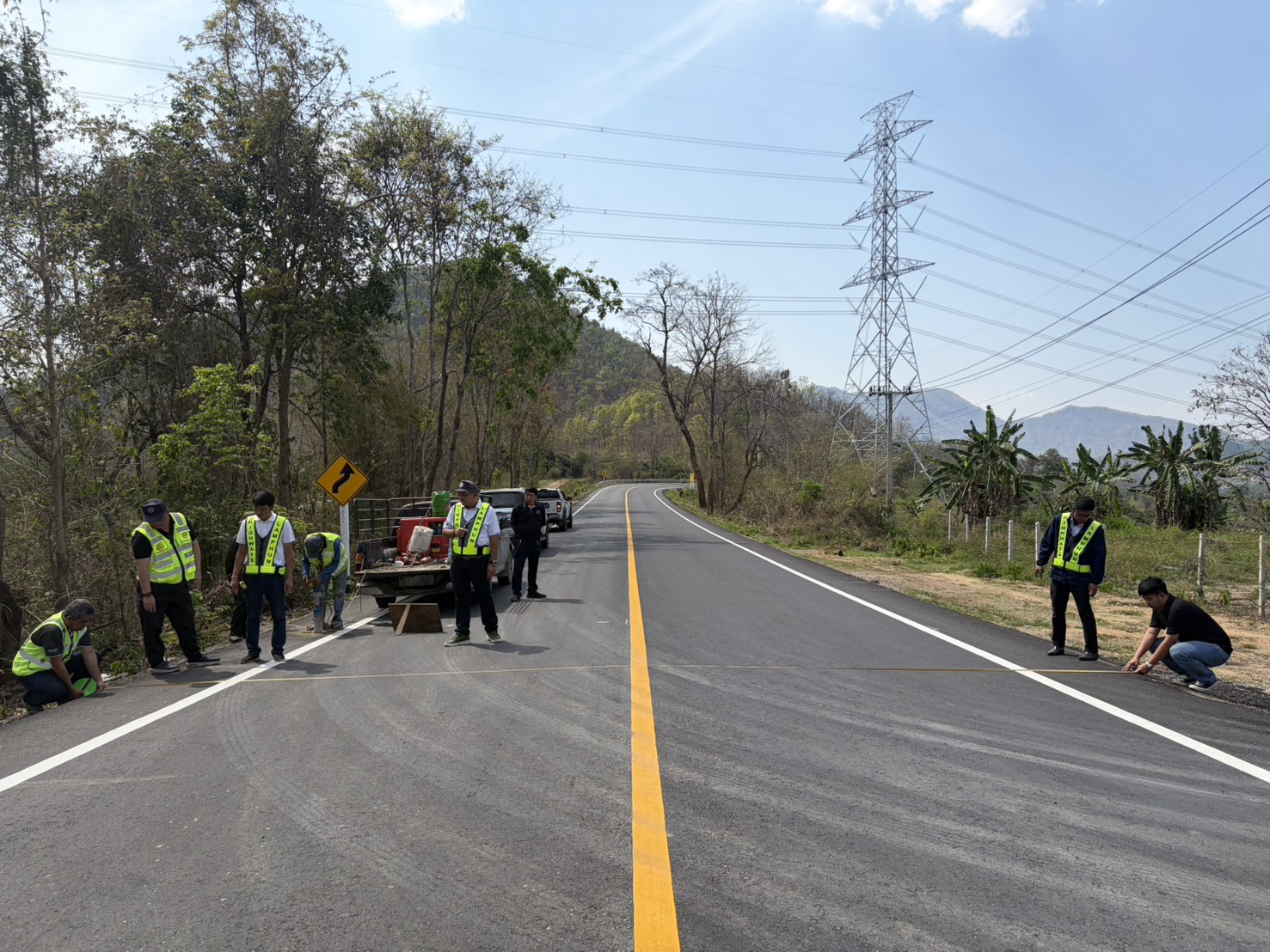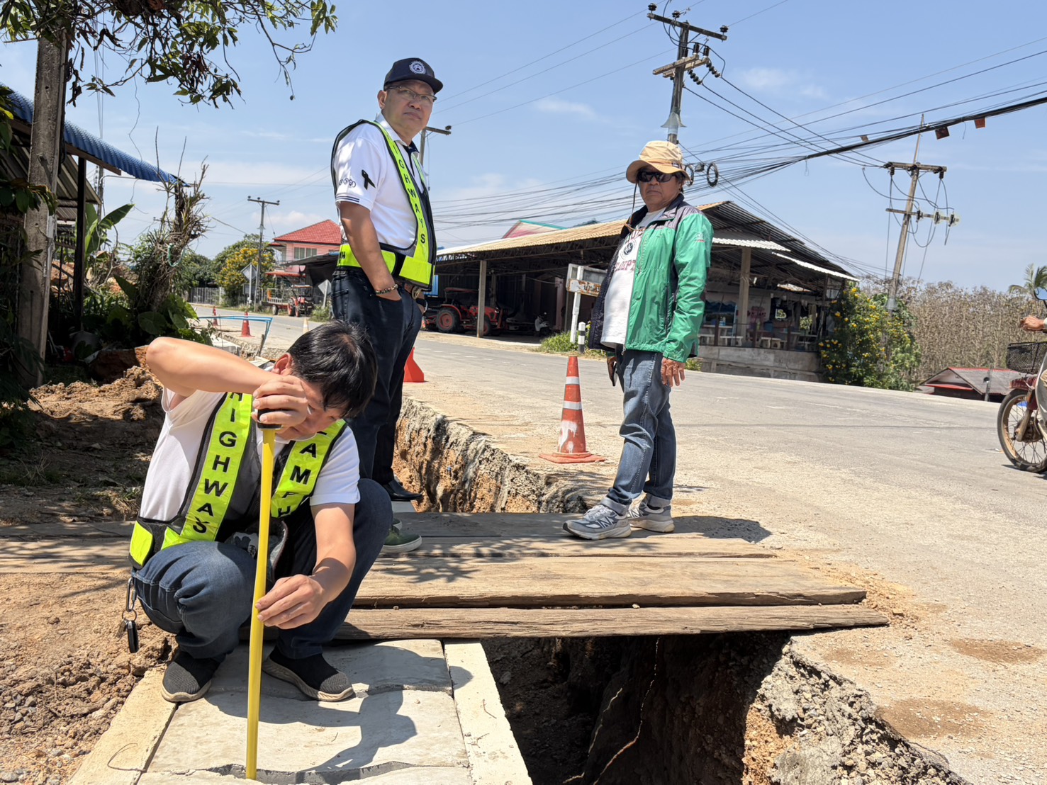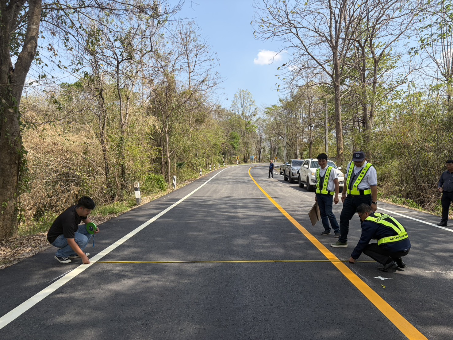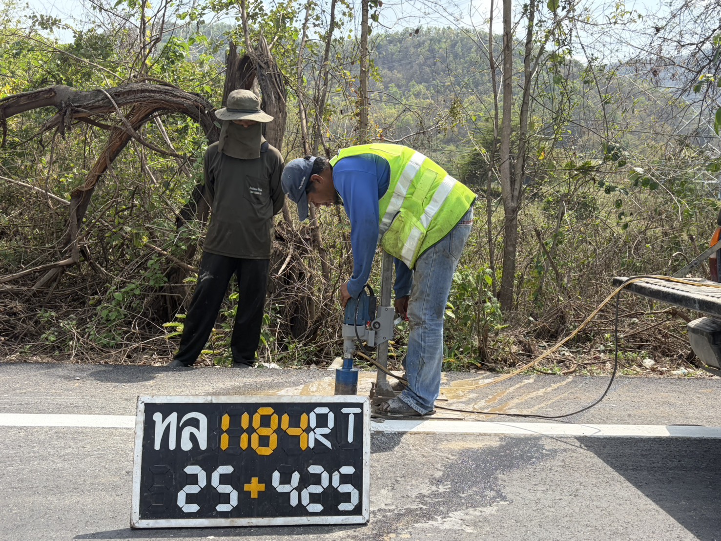 นายสมเดช โสภณดิเรกรัตน์ รองผู้อำนวยการสำนักงานทางหลวงที่ 1 นายปัญญา หวังดี ผู้อำนวยการแขวงทางหลวงลำพูน พร้อมด้วยนายทนงค์ เอี่ยมสำอางค์ รองผู้อำนวยการฯ ฝ่ายวิศวกรรม หัวหน้าหมวดทางหลวง และเจ้าหน้าที่แขวงทางหลวงลำพูน ออกพื้นที่ตรวจงานบูรณะผิวทางแอสฟัลต์ ตอน แม่อาว-ดอนมูล กม. 24+750 - กม. 27+735 อ.ทุ่งหัวช้าง จ.ลำพูน